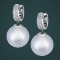 Серьги из белого золота с белым морским жемчугом AKOYA и вставками бриллиантов с-210651-бб